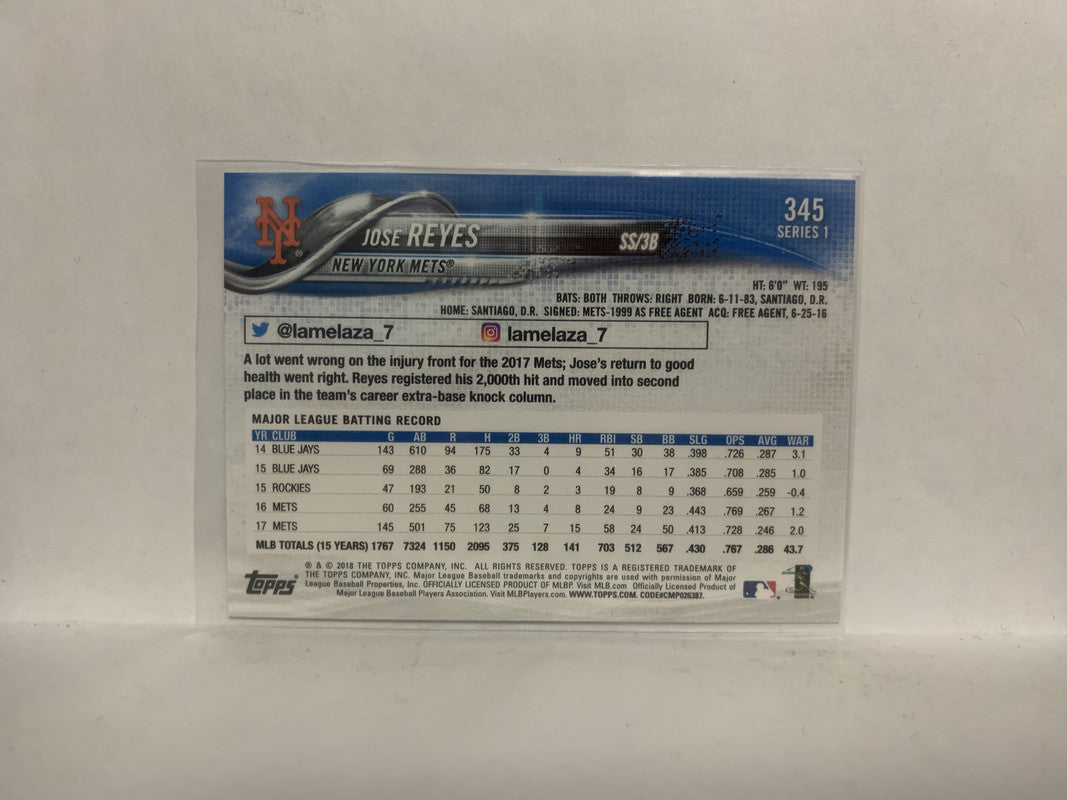 #345 Jose Reyes New York Mets 2018 Topps Series 1 Baseball Card NZB