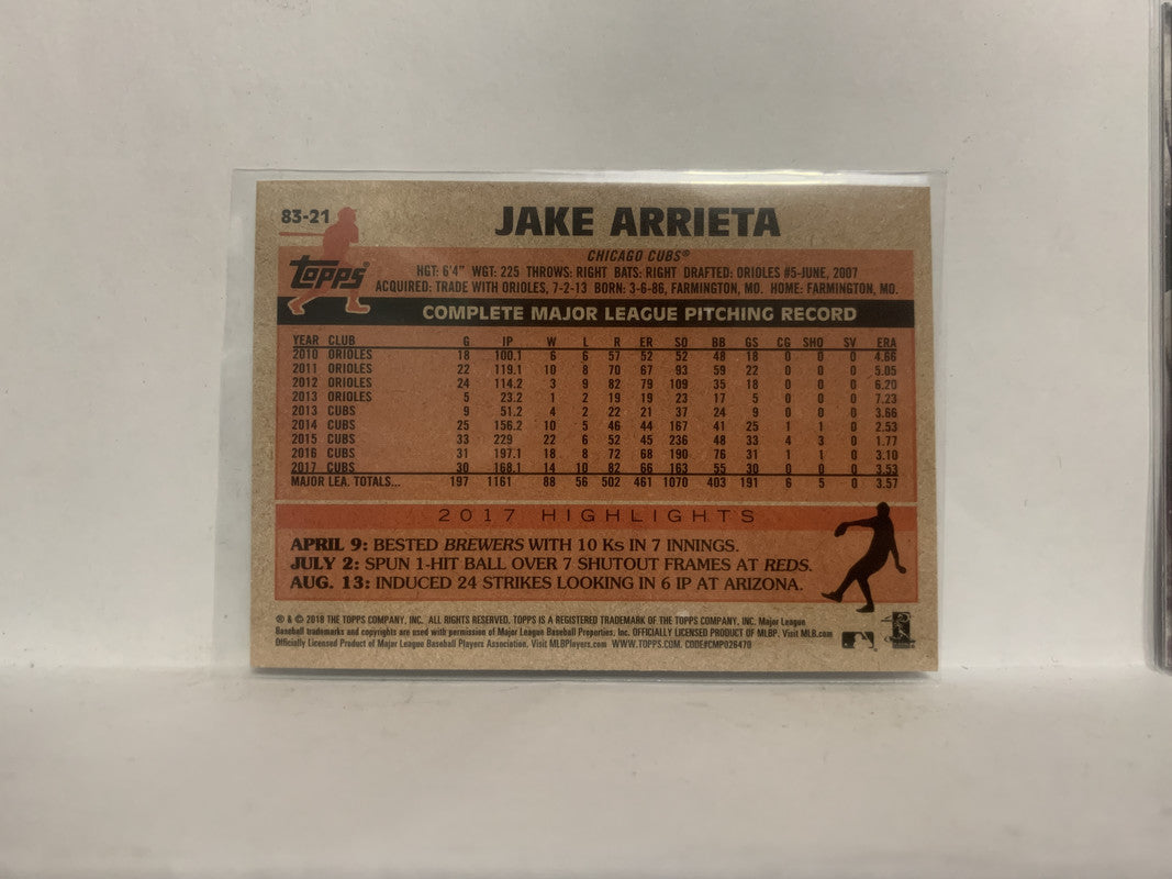 83-21 Jake Arrieta Chicago Cubs 2018 Topps Series 1 Baseball Card NY