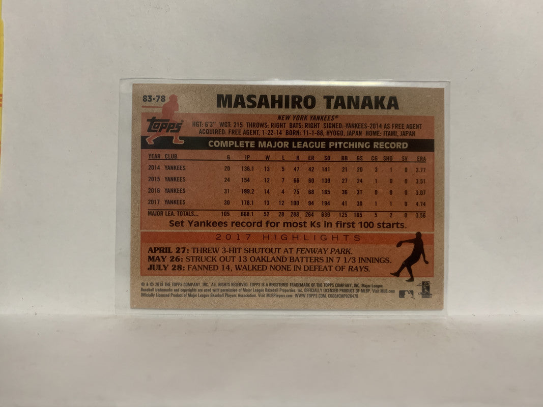 83-78 Masahiro Tanaka New York Yankees 2018 Topps Series 1 Baseball Card NY