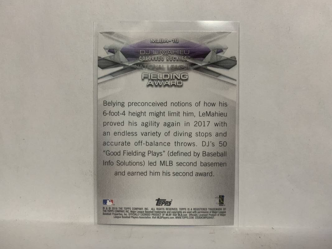 MLBA-19 DJ Lemahieu NL Fielding Award Colorado Rockies 2018 Topps Series 1 Baseball Card NR