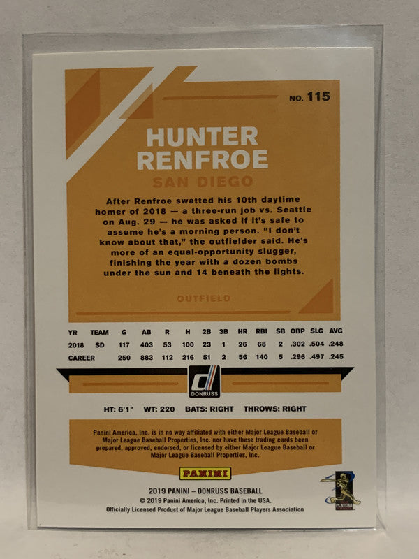 #115 Hunter Renfroe San Diego Padres 2019 Donruss Baseball Card