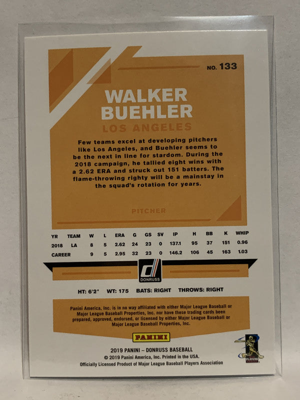 #133 Walker Buchler Los Angeles Dodgers 2019 Donruss Baseball Card