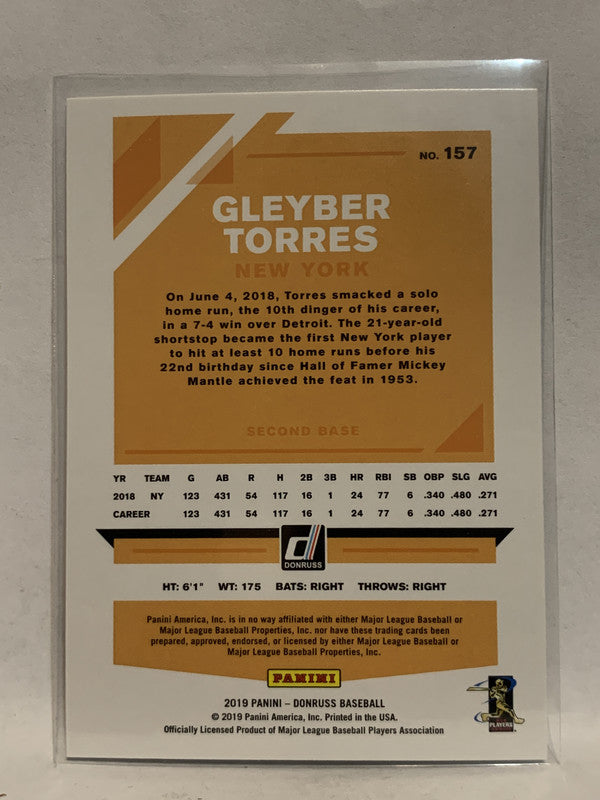 #157 Gleydber Torres New York Yankees 2019 Donruss Baseball Card