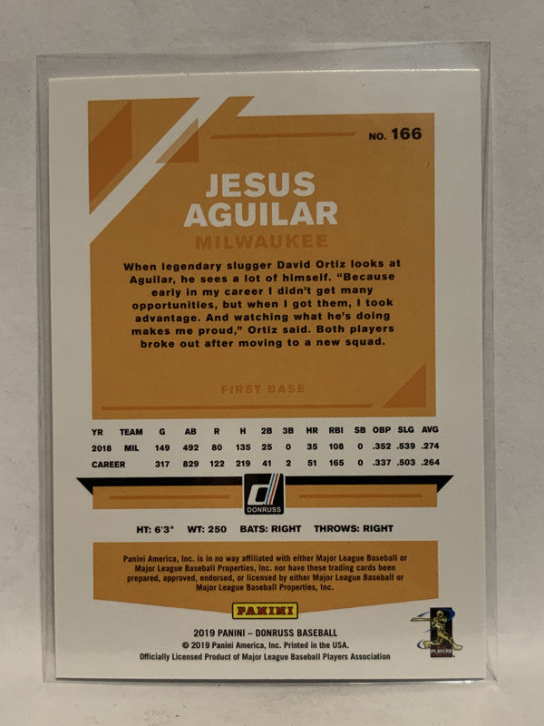 #166 Jesus Aguilar Milwaukee Brewers 2019 Donruss Baseball Card