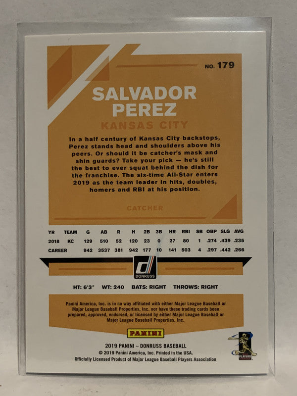 #179 Salvador Perez Kansas City Royals 2019 Donruss Baseball Card