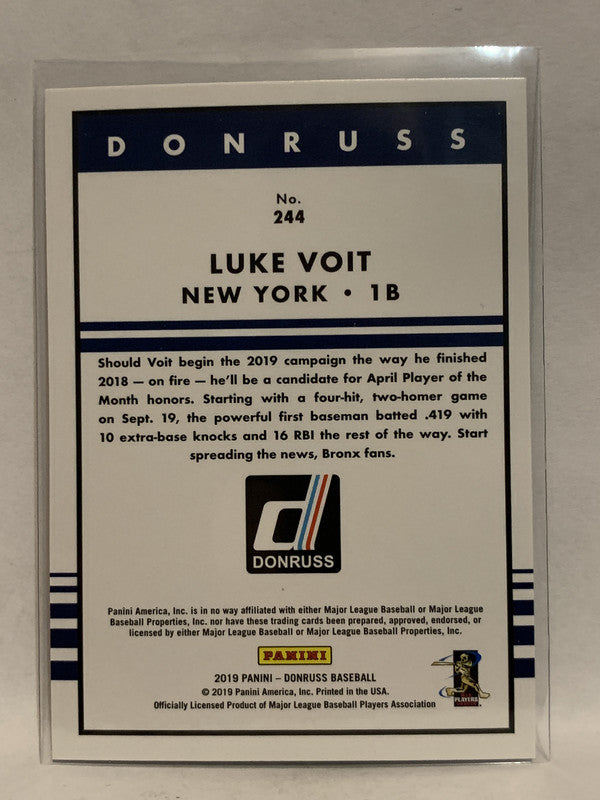 #244 Luke Voit Black New York Yankees 2019 Donruss Baseball Card