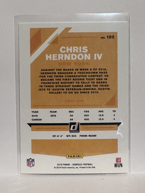 #192 Chris Herndon IV New York Jets 2019 Donruss Football Card