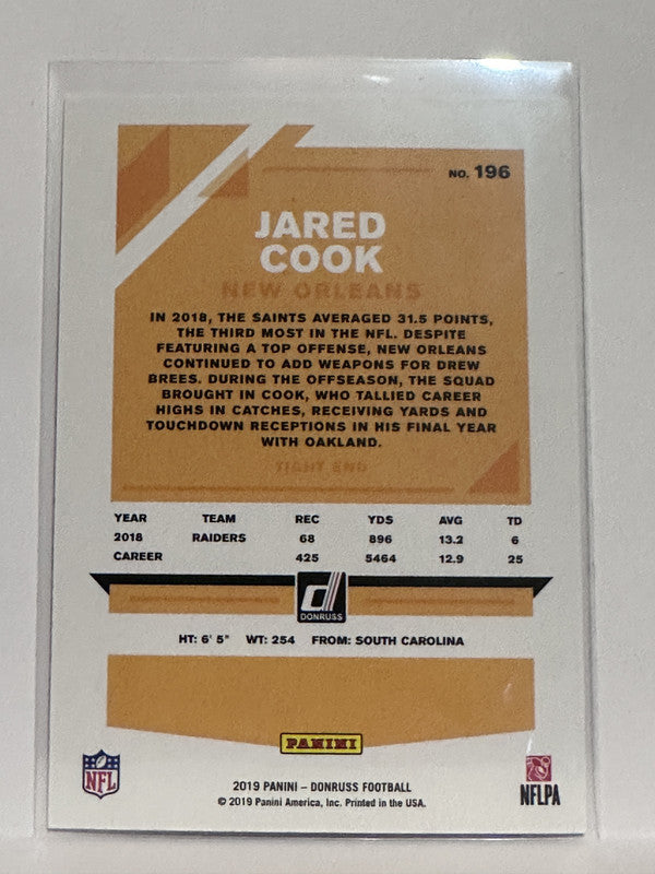 #196 Jared Cook 14/500 Purple New Orleans Saints 2019 Donruss Football Card