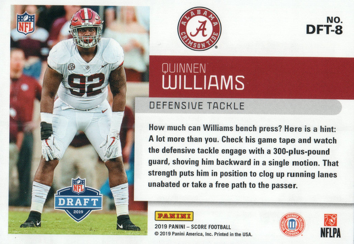 DFT-8 Quinnen Williams Alabama Crimson Tide 2019 Score Football Card