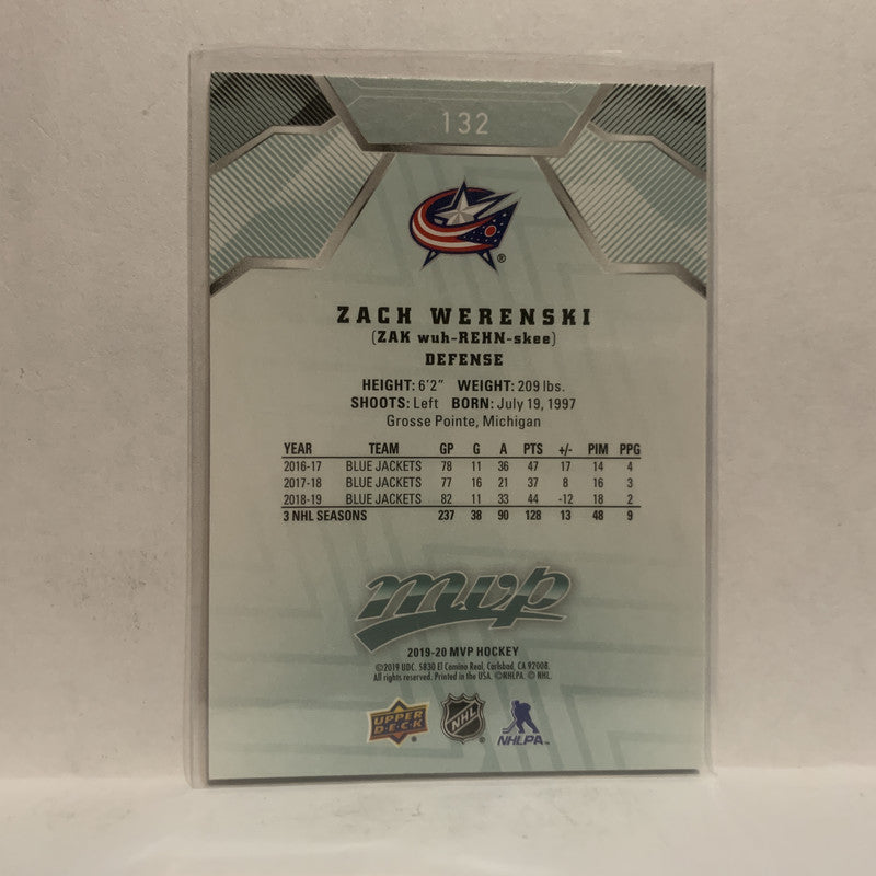 #132 Zach Wernski Columbus Blue Jackets 2019-20 Upper Deck MVP Hockey Card KY
