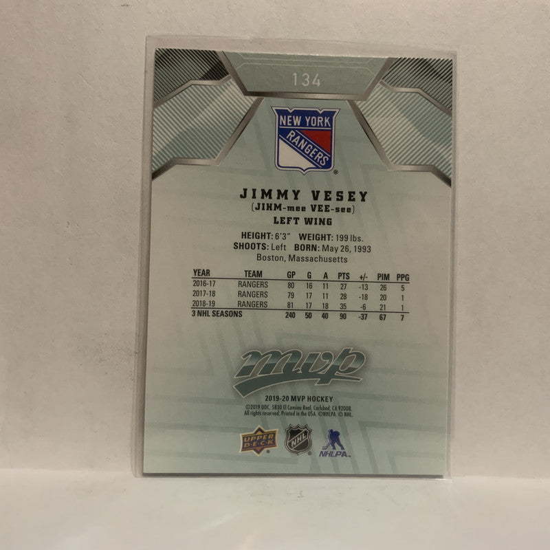 #134 Jimmy Vesey New York Rangers 2019-20 Upper Deck MVP Hockey Card KZ
