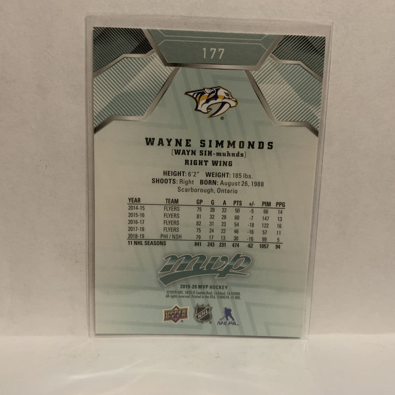 #177 Wayne Simmonds Nashville Predators 2019-20 Upper Deck MVP Hockey Card KM