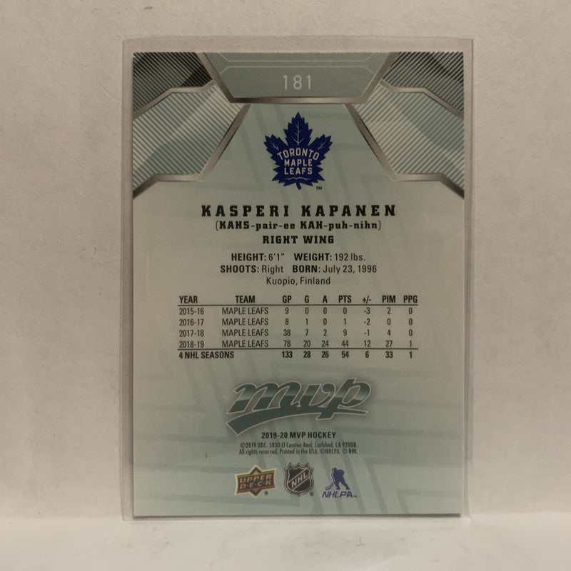 #181 Kasperi Kapanen Toronto Maple Leafs 2019-20 Upper Deck MVP Hockey Card KZ2