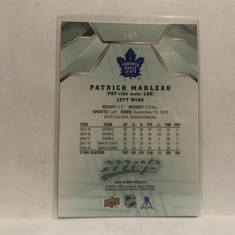#185 Patrick Marleau Toronto Maple Leafs 2019-20 Upper Deck MVP Hockey Card KK
