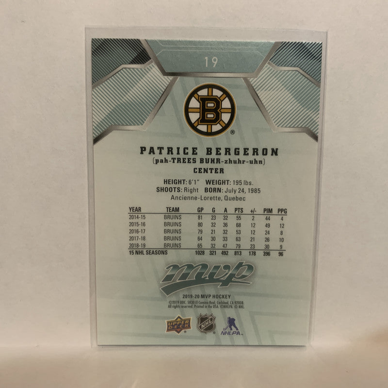 #19 Patrice Bergeron Boston Bruins 2019-20 Upper Deck MVP Hockey Card LI