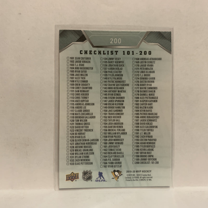 #200 Sidney Crosby Checklist Pittsburgh Pengiuns 2019-20 Upper Deck MVP Hockey Card KZ