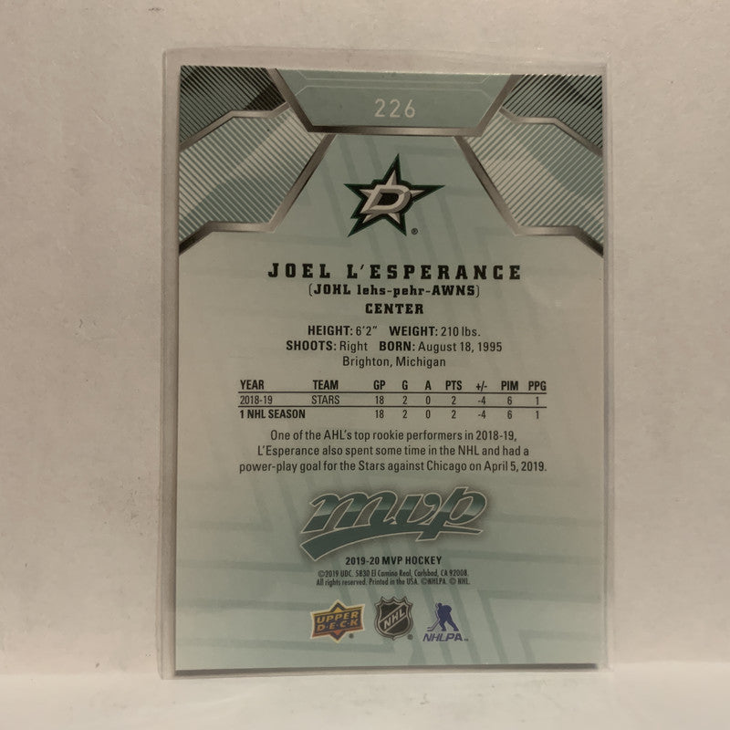 #226 Joel L'Esperance Rookie Dallas Stars 2019-20 Upper Deck MVP Hockey Card KW