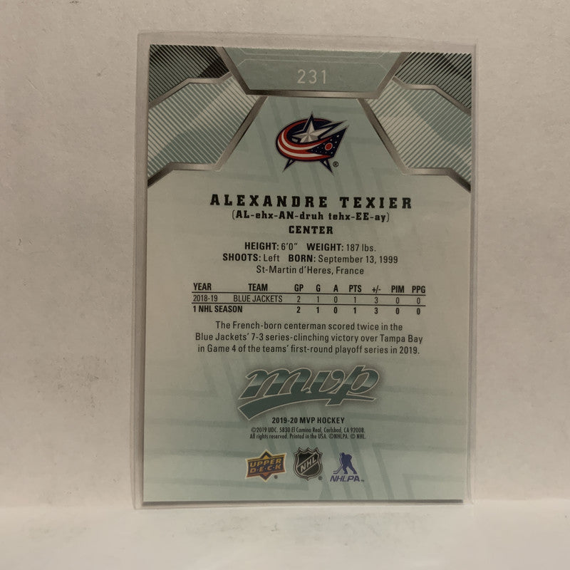 #231 Alexander Texier Rookie Columbus Blue Jackets 2019-20 Upper Deck MVP Hockey Card KZ