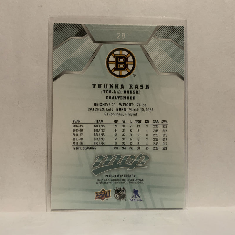 #28 Tuukka Rask Boston Bruins 2019-20 Upper Deck MVP Hockey Card KO