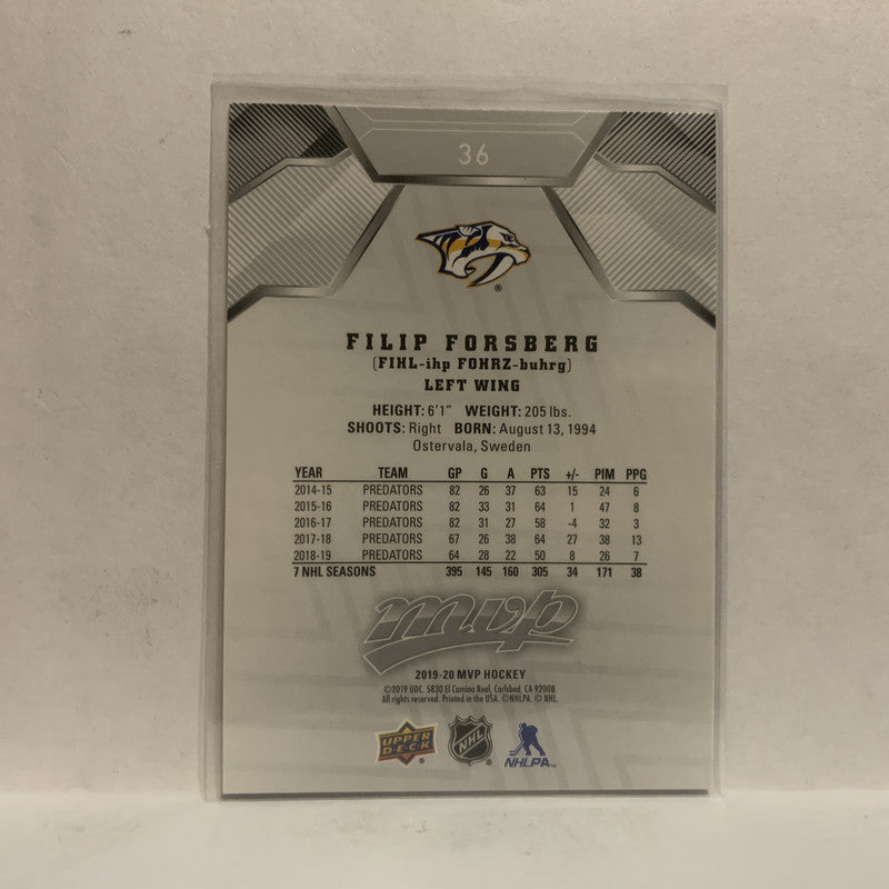 #36 Filip Forsberg Silver Scripts Nashville Predators 2019-20 Upper Deck MVP Hockey Card KZ