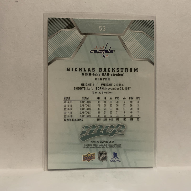 #53 Nicklas Backstrom Washington Capitals 2019-20 Upper Deck MVP Hockey Card KY