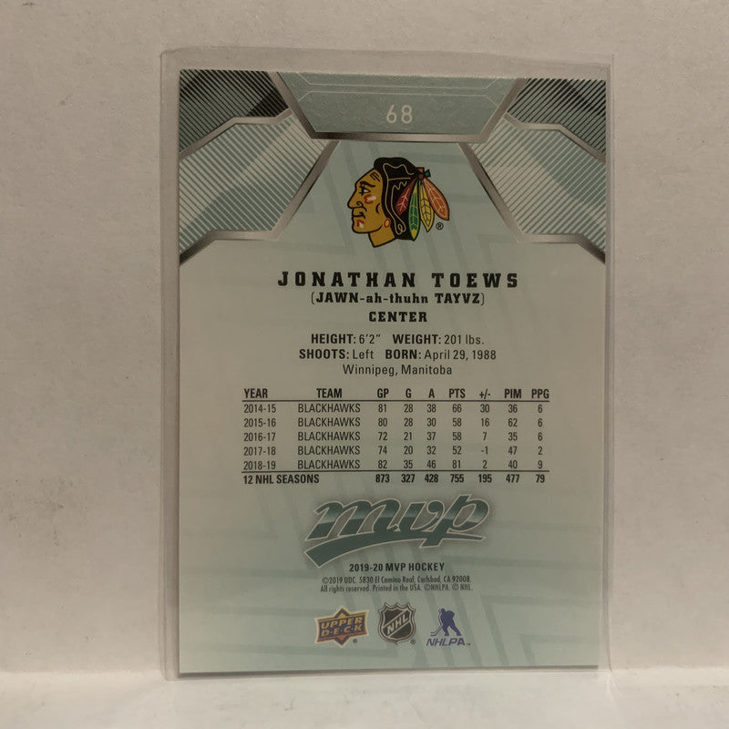 #68 Jonathan Toews Chicago Blackhawks 2019-20 Upper Deck MVP Hockey Card KX