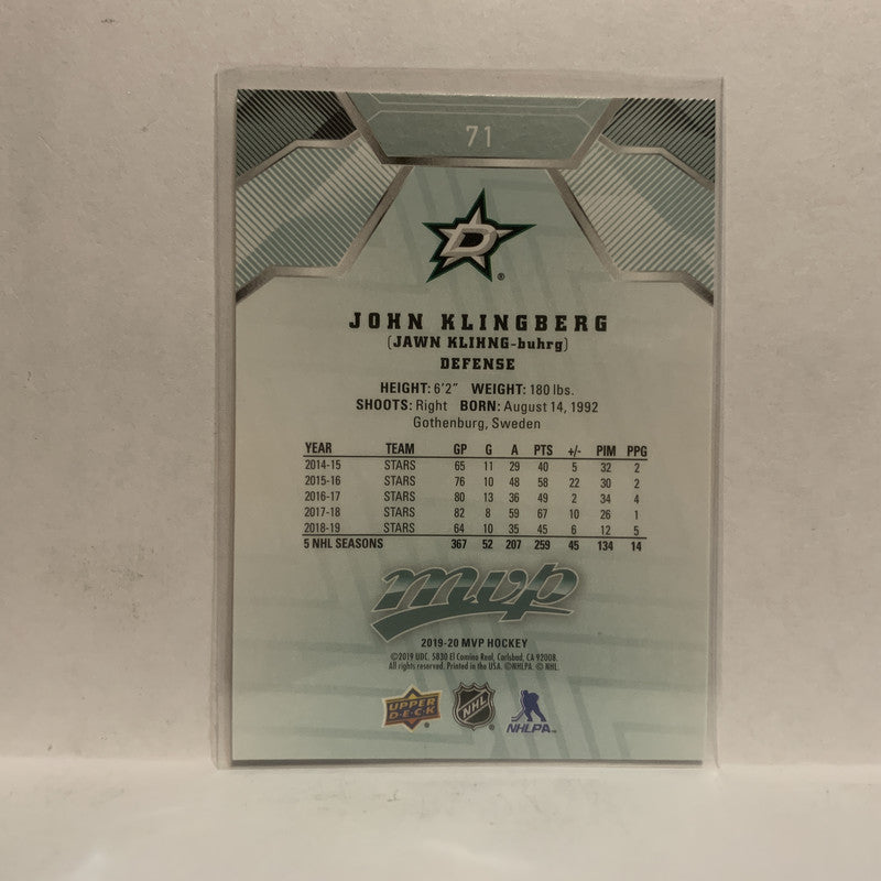 #71 John Klingberg Dallas Stars 2019-20 Upper Deck MVP Hockey Card KW