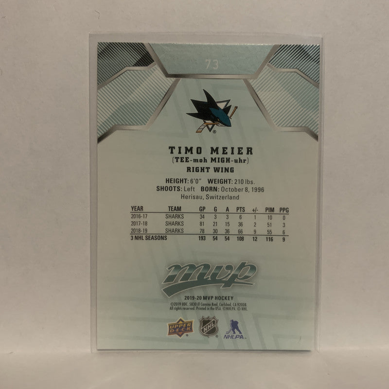 #73 Timo Meier San Jose Sharks 2019-20 Upper Deck MVP Hockey Card LH