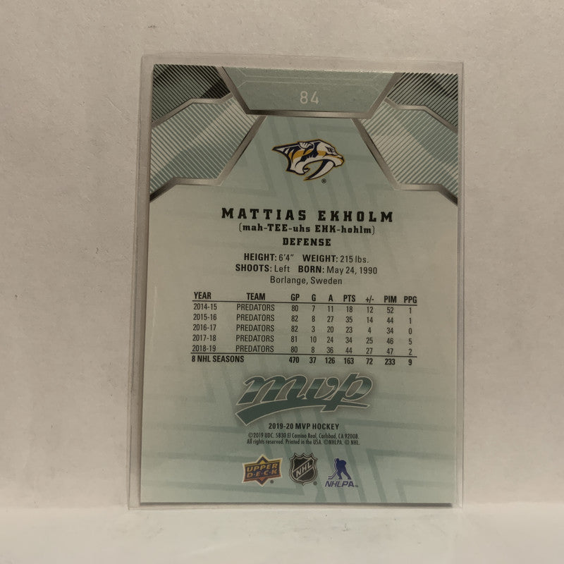 #84 Mattias Ekholm Nashville Predators 2019-20 Upper Deck MVP Hockey Card KZ1