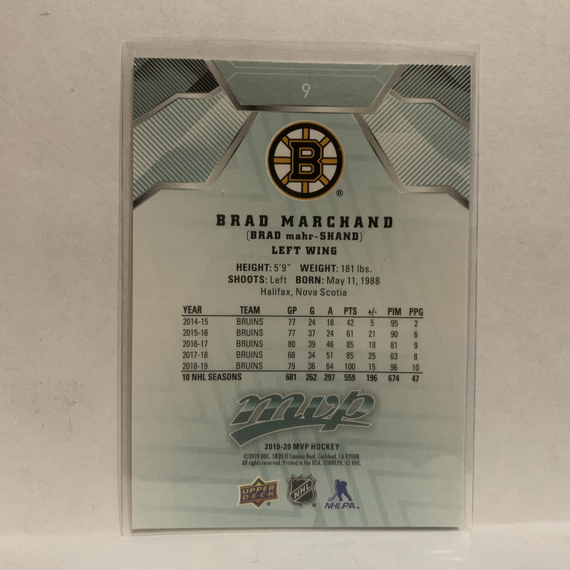 #9 Brad Marchand Boston Bruins 2019-20 Upper Deck MVP Hockey Card KN