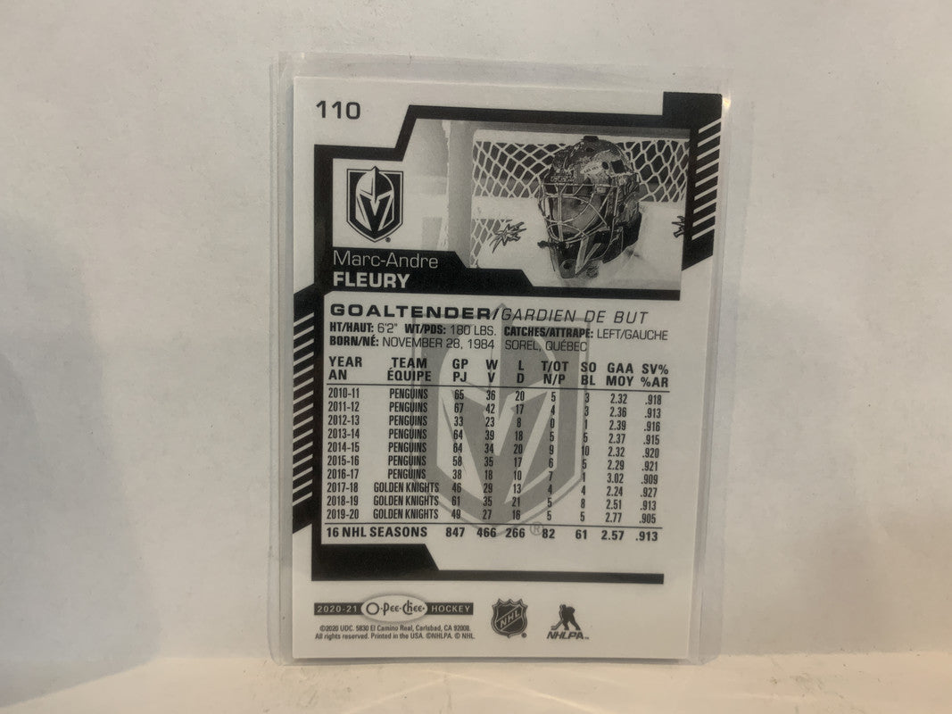#110 Marc-Andre Fleury Vegas Gloden Kinghts 2020-21 O-PEE-CHEE Hockey Card MT