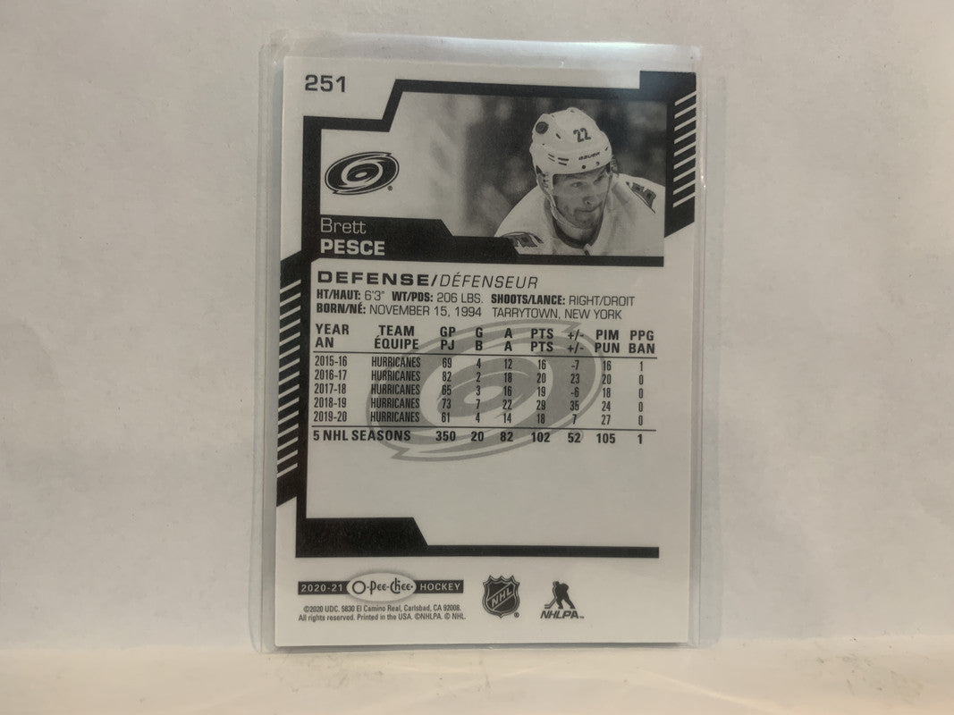 #251 Brett Pesee Carolina Hurricanes 2020-21 O-PEE-CHEE Hockey Card MW