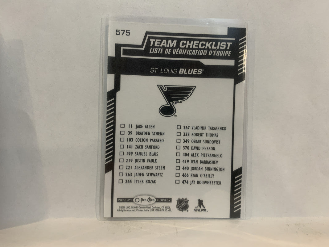#575 Team Checklist St Louis Blues 2020-21 O-PEE-CHEE Hockey Card MR