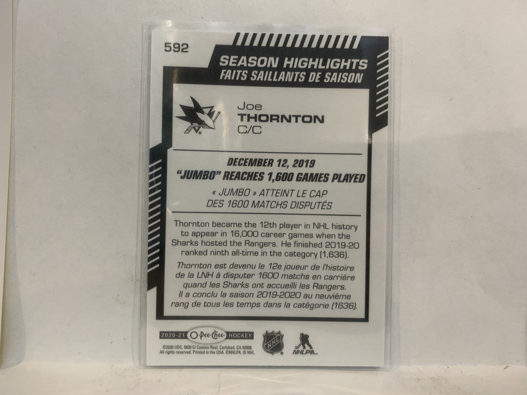 #592 Joe Thornton Season Highlights San Jose Sharks 2020-21 O-PEE-CHEE Hockey Card MO
