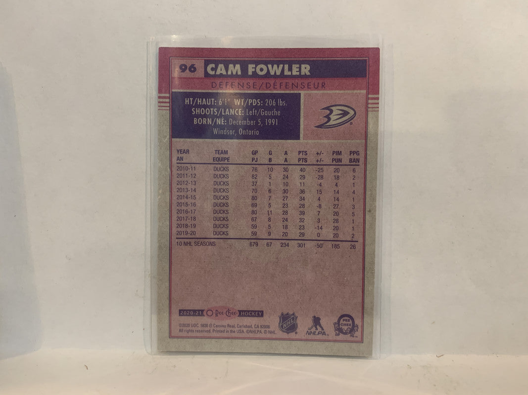 #96 Cam Fowler Anaheim Ducks 2020-21 O-PEE-CHEE Hockey Card MQ
