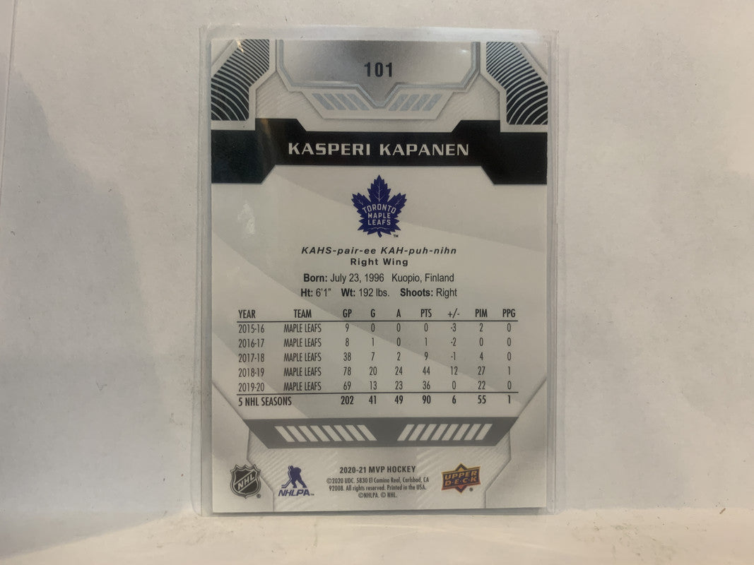 #101 Kasper Kapanen Silver Scripts Toronto Maple Leafs 2020-21 Upper Deck MVP Hockey Card MJ