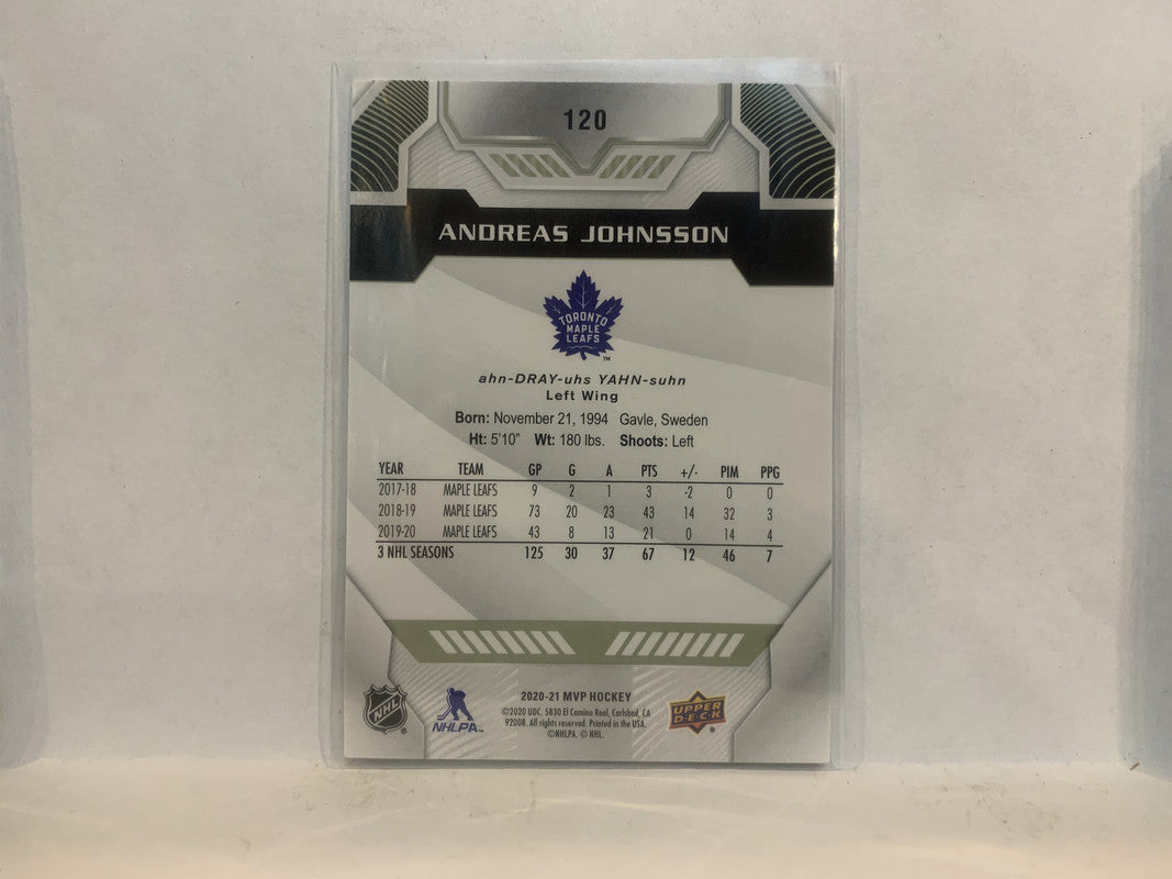 #120 Andreas Johnsson Toronto Maple Leafs 2020-21 Upper Deck MVP Hockey Card MG