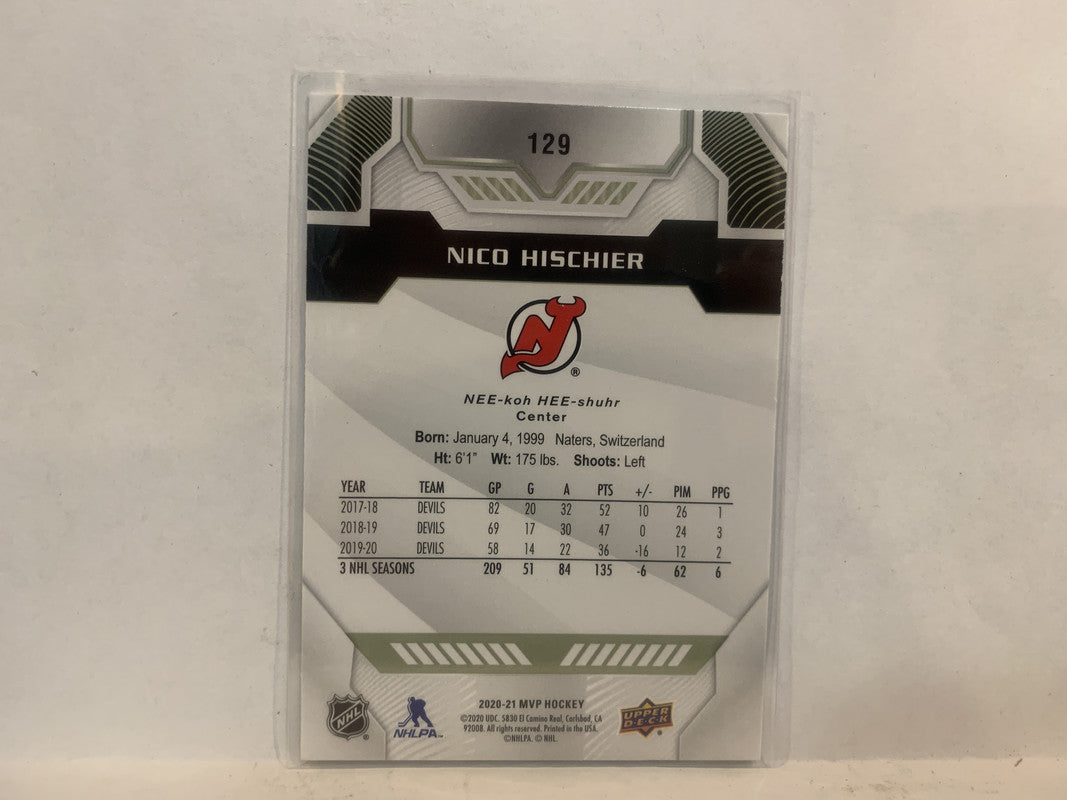 #129 Nico Hischer New Jersey Devils 2020-21 Upper Deck MVP Hockey Card MI