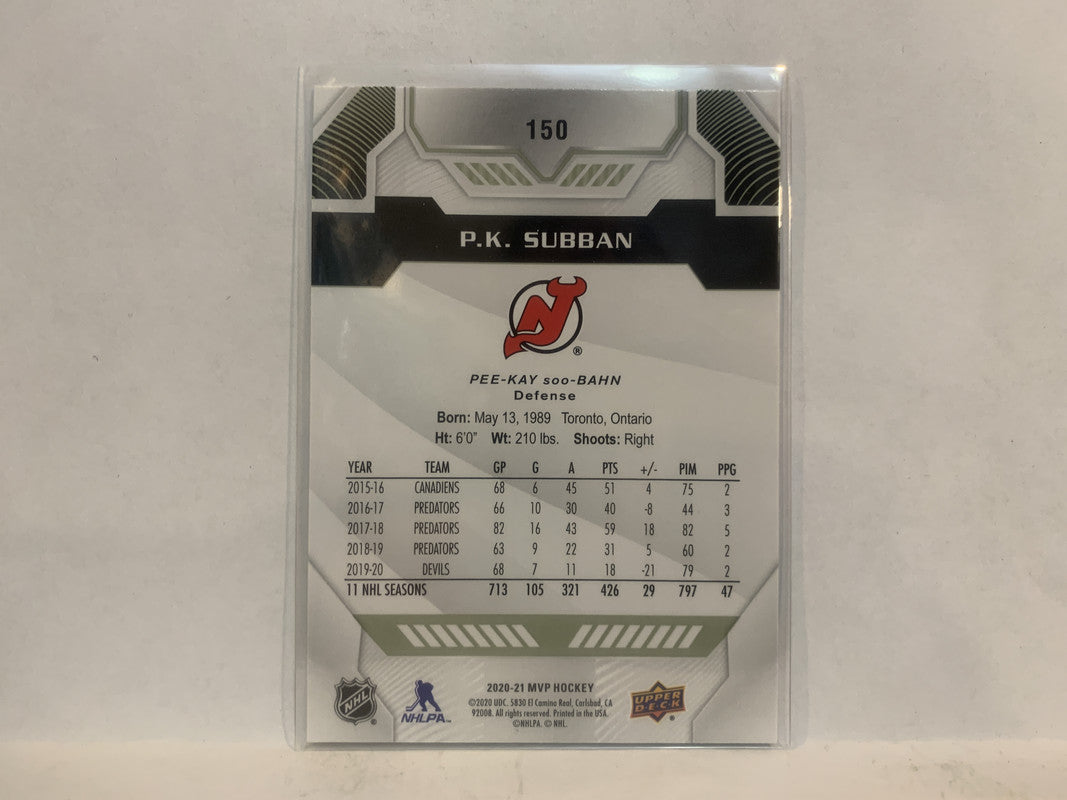 #150 P.K. Subban New Jersey Devils 2020-21 Upper Deck MVP Hockey Card MI