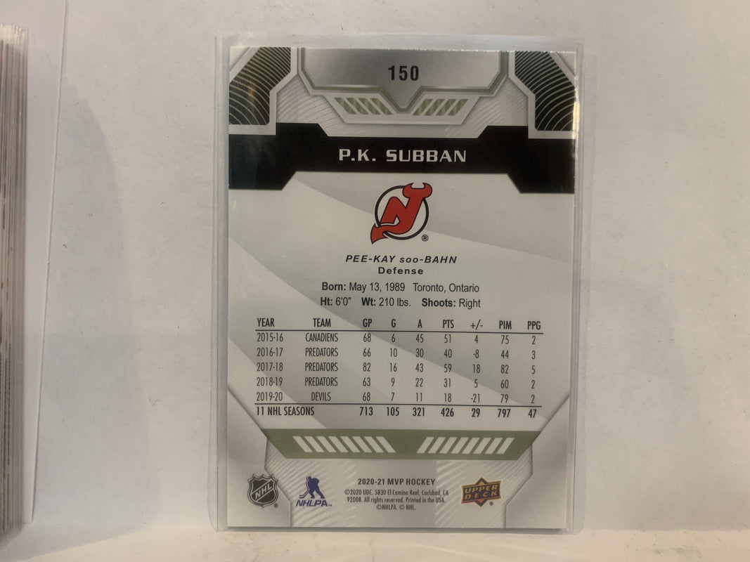 #150 P.K. Subban New Jersey Devils 2020-21 Upper Deck MVP Hockey Card MJ