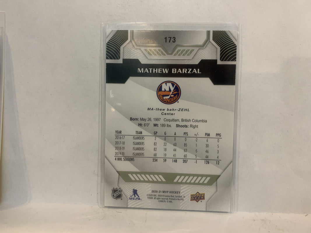 #173 Mathew Barzel New York Islanders 2020-21 Upper Deck MVP Hockey Card MM