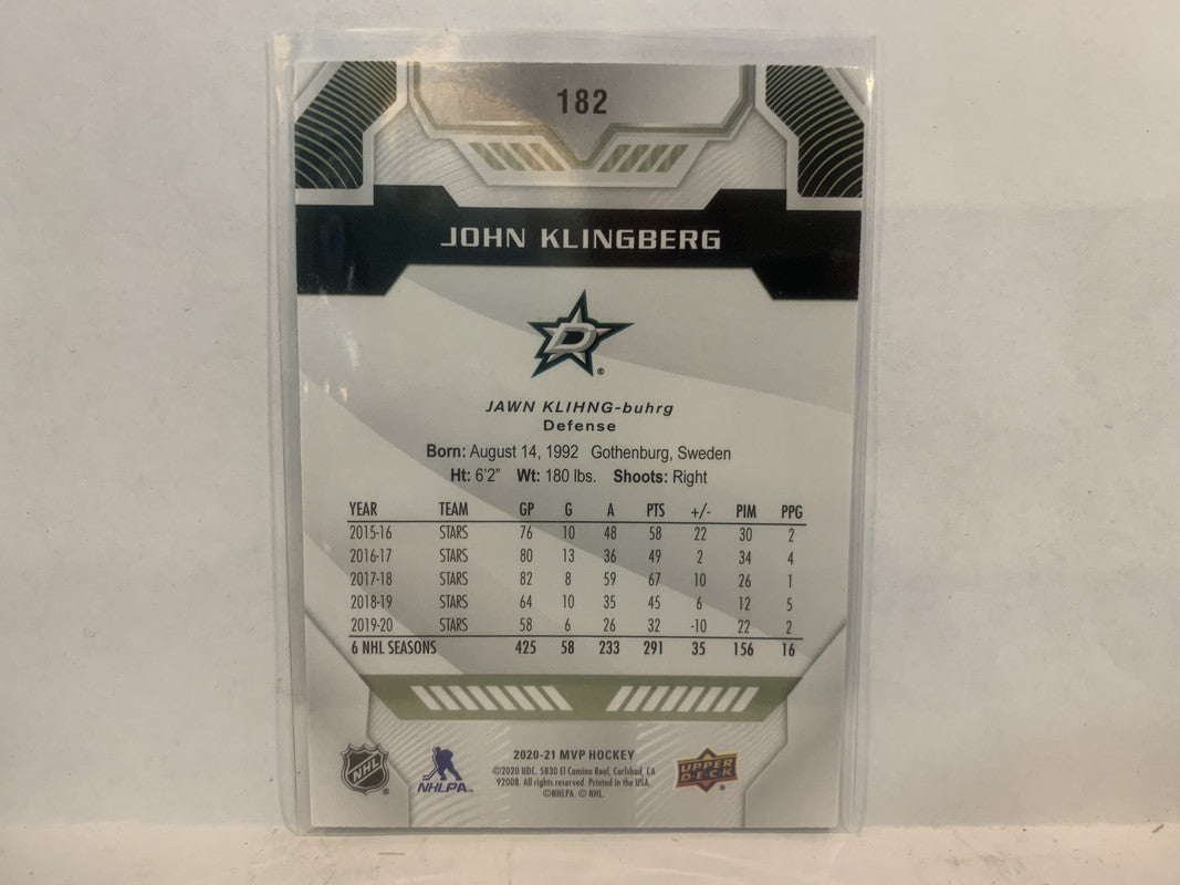 #182 John Klingberg Dallas Stars 2020-21 Upper Deck MVP Hockey Card MM