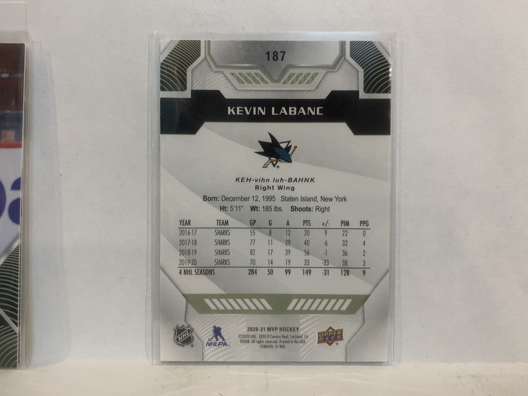 #187 Kevin Labanc San Jose Sharks 2020-21 Upper Deck MVP Hockey Card MK