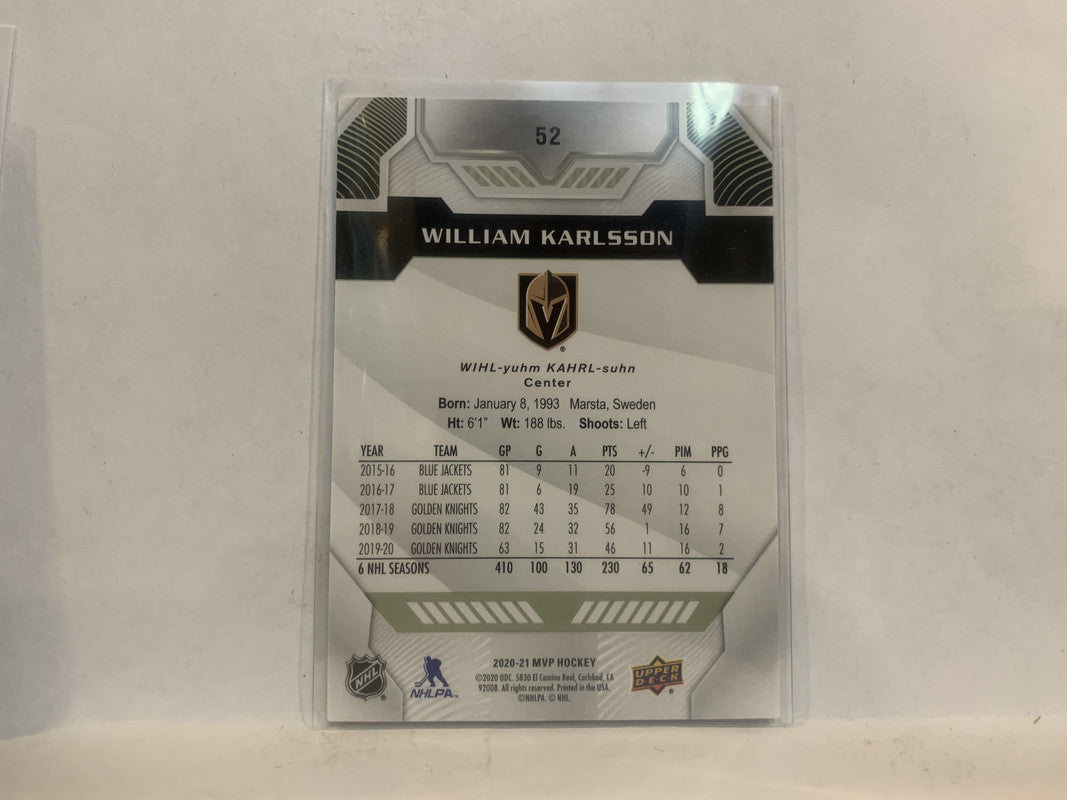 #52 William Karlsson Vegas Golden Knights 2020-21 Upper Deck MVP Hockey Card MF