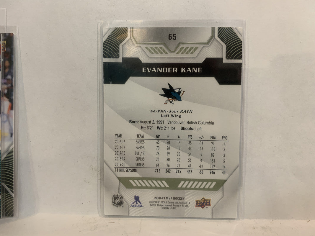 #65 Evander Kane San Jose Sharks 2020-21 Upper Deck MVP Hockey Card ML