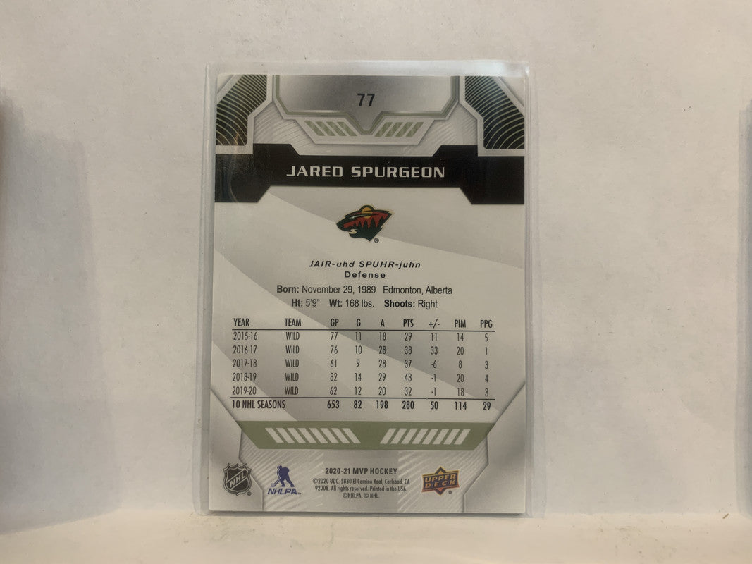 #77 Jared Spurgeon Minnesota Wild 2020-21 Upper Deck MVP Hockey Card MG