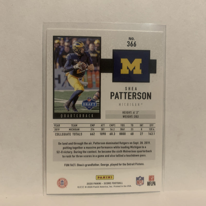 #366 Shea Patterson Rookie Michigan Wolverines 2020 Score Football Card LZ