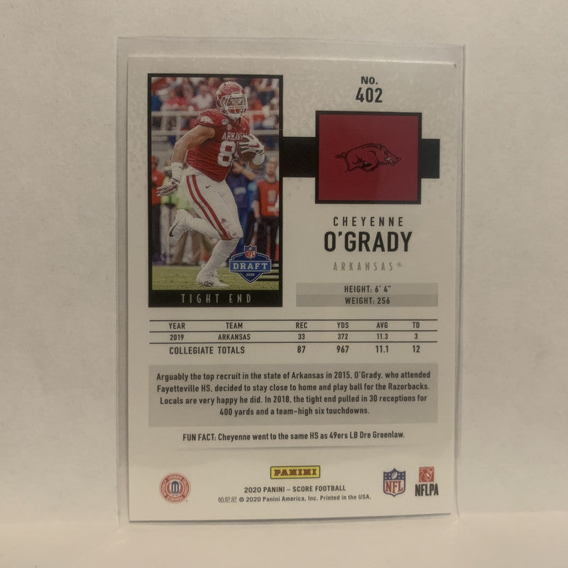 #402 Cheyenne O'Grady Rookie Arkansas 2020 Score Football Card LZ