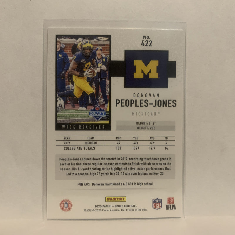 #422 Donovan Peoples-Jones Rookie Michigan 2020 Score Football Card LZ