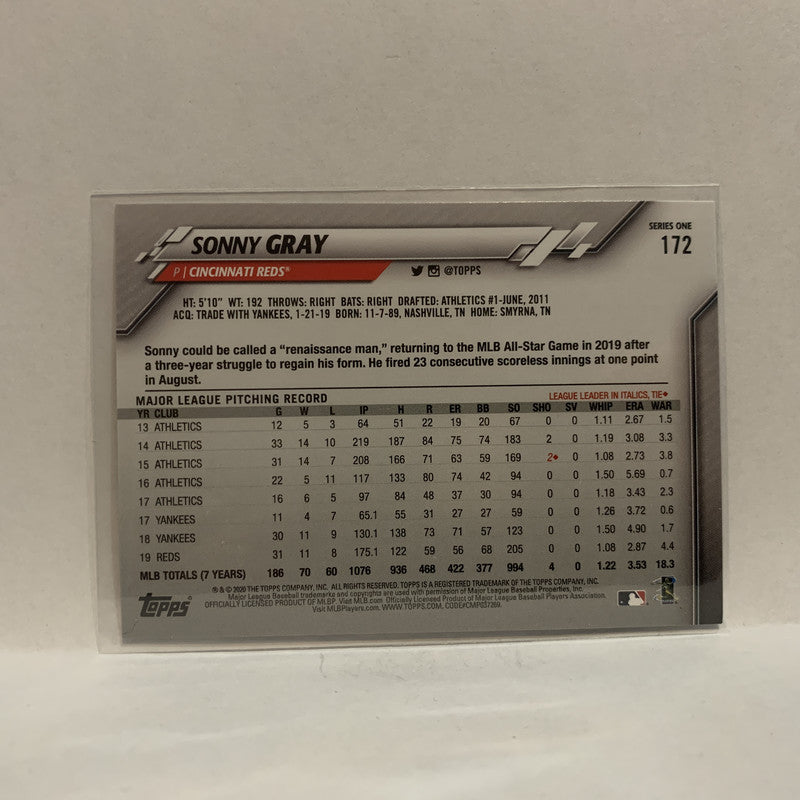 #172 Sonny Gray Cincinnati Reds 2020 Topps Series 1 Baseball Card IA